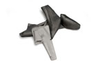Bernd Fischer sorgt mit seinen gefalteten Wandobjekten und Skulpturen für Erstaunen und Irritation. Seine Objekte entziehen sich hinsichtlich ihrer Materialität zunächst jeder eindeutigen Bestimmung: Leder, Textiles, Pappe, Kunststoff, Gummi, Baustoff? Tatsächlich handelt es sich bei seinen Schöpfungen um Keramik aus Paperclay, einem Steinzeugton von besonderer Beschaffenheit. Mit schwarzer und weißer Tusche überzogen entstehen Gebilde von expressiver Gestalt, frei von Funktionalität, die eine Ästhetik des Fragilen und Fragmentarischen entfalten.