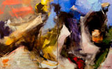 His painting captures motion and speed - snapshots captured in the picture. With different brushes and pens and a rich range of colors he brings his visual ideas to the screen in different speed. What at first seem to be spontaneous acts, is yet well-composed and not due to chance at a second view. Reflective spontaneity - a paradox: Intense movement meets with a gradual hardening, which is, however, never frozen. Gestural abstract color tracks and surfaces and expressive graphic elements in blurred shapes of coexistence and cooperation is Harald Wolff's distinctive signature. The energy of brushwork and colors mixes, repels itself, imposes, interfere or complement with each other. From evocative forms emerge enigmatic, often absurd relationships – ambiguous, mysterious imagery that allow the viewer a lot of room for exploration.